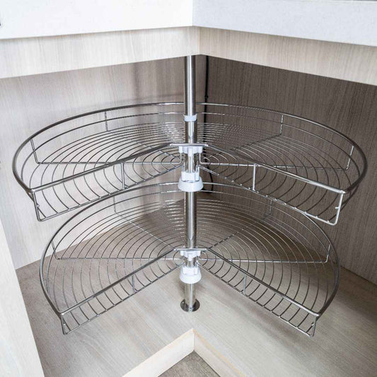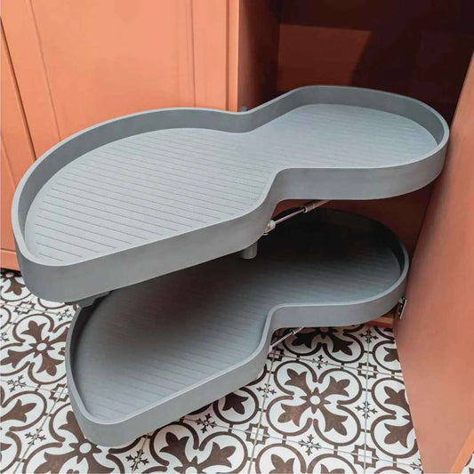 Aprovecha al máximo las esquinas de tu cocina con nuestros tornos esquineros giratorios. Ideales para reposteros en L o módulos esquineros rectos, estos organizadores giratorios te permiten almacenar y acceder fácilmente a ollas, sartenes y otros utensilios sin esfuerzo. Disponibles en versiones de 180° y 270°, se instalan en los muebles bajos de la cocina para transformar esos espacios de difícil acceso en áreas funcionales y bien organizadas.