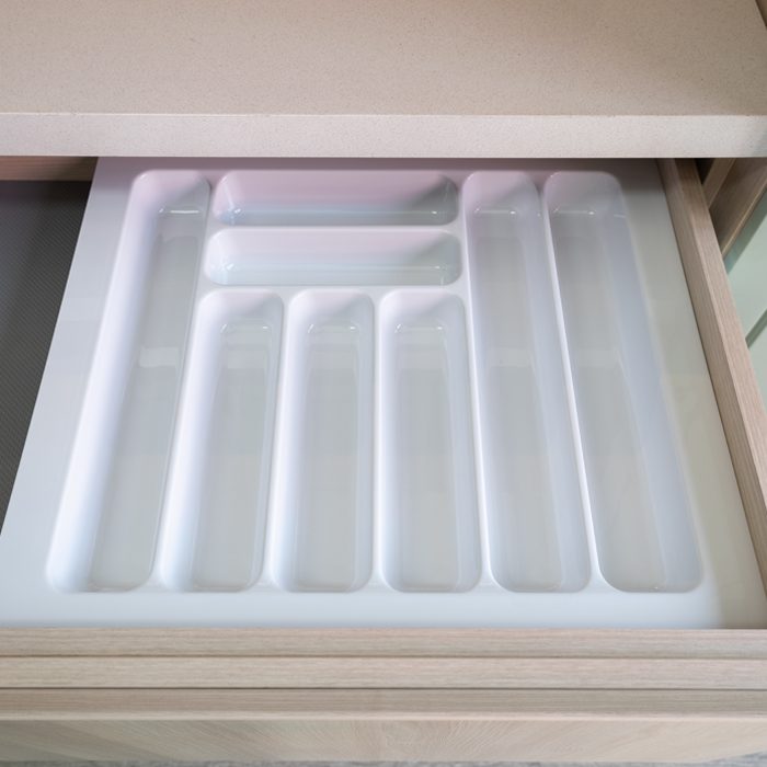 Fabricado con plástico ABS de alta resistencia, este cubertero es duradero y confiable. Disponible en blanco o gris, colores neutros que combinan con cualquier estilo de cocina.