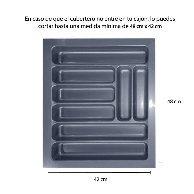 Antes de comprar, verifica que tus utensilios y artículos encajen en las divisiones del cubertero. Las medidas internas están detalladas en las fotos del producto.