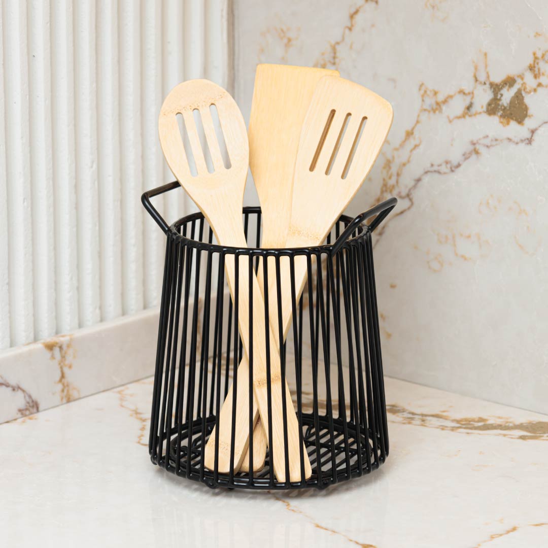 Una forma decorativa y funcional de organizar tus cucharones favoritos. Pídelo eN blanco o negro, el color que combine mejor con tus muebles de cocina.