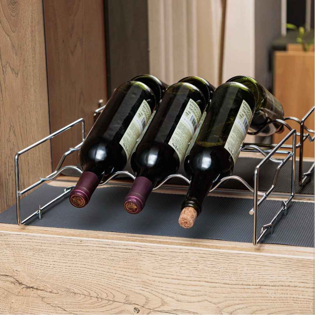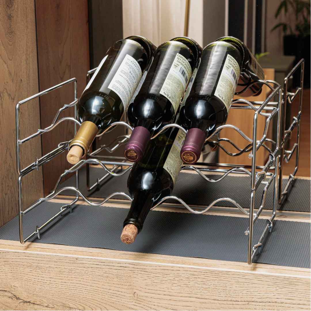 Organiza y exhibe tus vinos favoritos con nuestra vinera cromada apilable, diseñada para almacenar hasta 3 botellas de vino. Fabricada con metal cromado de alta calidad, esta vinera no solo es resistente y duradera, sino que también aporta un toque de elegancia y modernidad a cualquier bar en casa. Su diseño apilable te permite personalizar la altura según tus necesidades, pudiendo apilar varias unidades para crear una vinera de varios niveles, perfecta para cualquier entusiasta del vino. Ideal para cocinas, comedores o bares en casa, esta vinera maximiza el espacio y mantiene tus botellas de vino tinto y vino blanco de manera segura y accesible. Añade estilo y funcionalidad a tu hogar con esta práctica y versátil vinera, convirtiéndola en la pieza central de tu bar en casa o tu restobar.